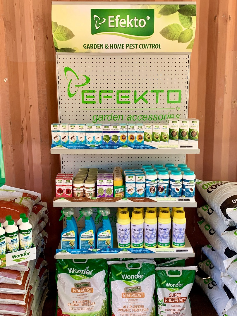 We also stock an extensive range of Effekto herbicides, fungicides and pesticides as well as compost, bark mulch, potting soil and pots in a variety of sizes.